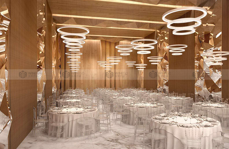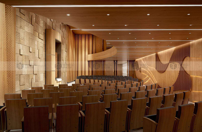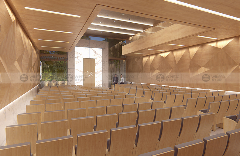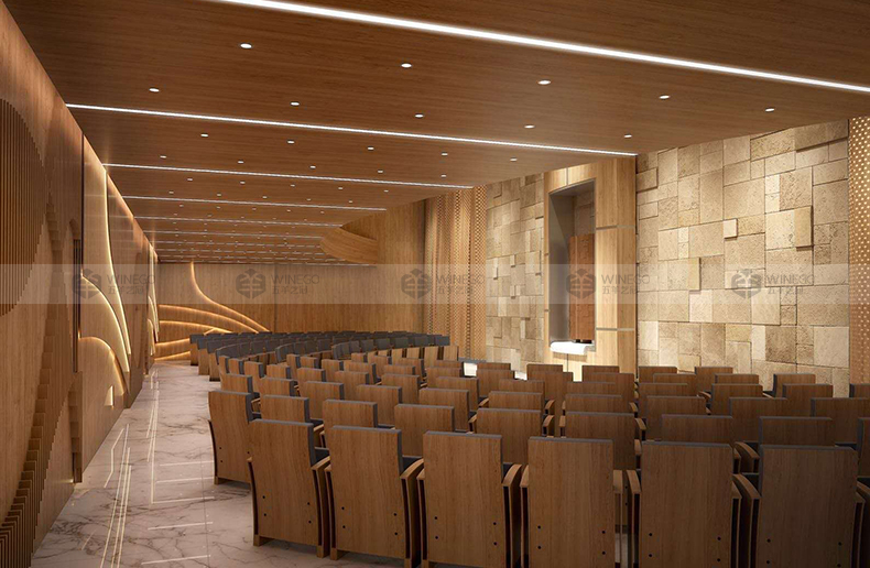 5. 項目概述ORSINAI 由一個餐廳和一個藝術中心組成。 我們聲學設計師和對方設計師經過再三溝通和科學計算后,采用槽孔吸音板,孔木吸音板,三角立體擴散體,以及三角造型板的搭配方案,完美的實現了藝術和聲學的結合。