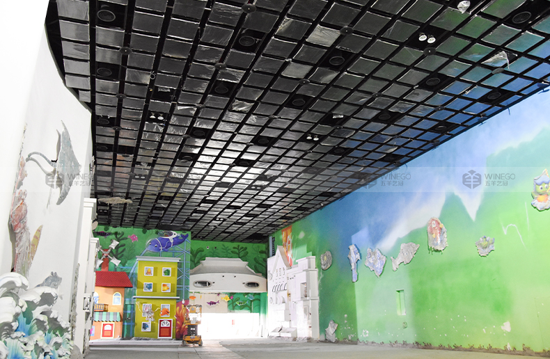 4. 五羊產(chǎn)品全頻空間吸聲體、低頻空間吸聲體、鋁纖維空間吸聲體、A級防火布藝吸聲板、鋁板網(wǎng)空間吸聲體、鋁穿孔吸聲板、環(huán)保吸音棉包,共計近6萬平方米