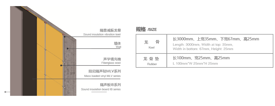 隔音減震龍骨是采用天然橡膠材料輕鋼龍骨加工而成。減振器在輕鋼龍骨與墻體之間形成軟連接,切斷聲音傳播聲橋,能夠對低頻和高頻的震動有相當好的抑制作用。墻體輕鋼龍骨的架空方式安裝,在較寬的干擾頻率范圍內有相當明顯的隔振隔音效果,阻尼橡膠還具有隔震隔音效果,特別適合于墻體振動所造成的低頻固體傳聲。減振輕鋼龍骨結構簡單,占用室內空間小,自振頻率低,隔振效果好,是墻體理想減振隔音降噪的理想器件。