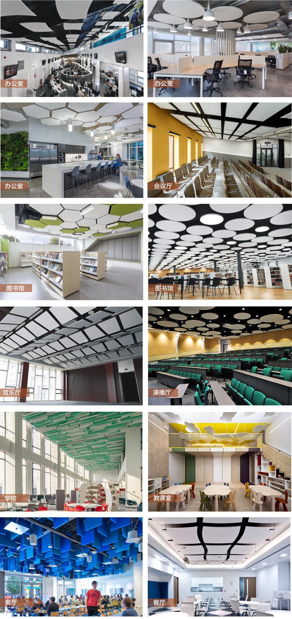 酒店、辦公室、醫(yī)院、圖書館、影院、劇場(chǎng)、音樂廳、體育館、演播廳、會(huì)議室、車站候車廳和機(jī)場(chǎng)等。