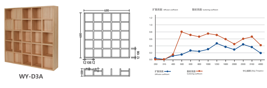 • 聲學(xué)特點根據(jù)QRD理論公式計算出來的定位序列柵格,它的溝槽深度、 寬度,能在全方位、多角度的入射聲情況下產(chǎn)生均勻的擴散反射, 使人聲更加柔順,有效的提高聲音的飽滿度、豐富度和立體感