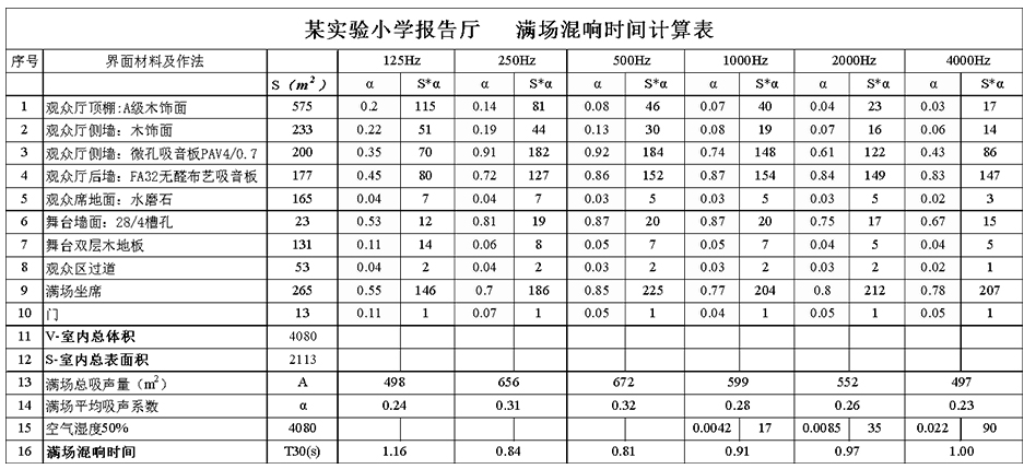 綜上,需對后墻作強吸聲處理,以降低回聲的強度。