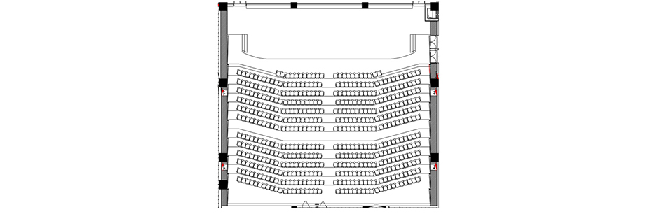 報告廳平面為矩形,整個房間呈鞋盒型。觀眾廳長約23m,寬24m,高6.87m。平面呈矩形。