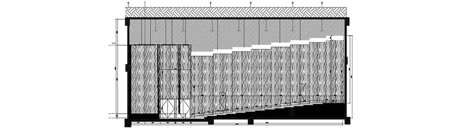 觀眾廳側墻交替設置木飾面板、微孔吸音板PAV4/0.7-15;微孔吸音板后填50mm48K玻璃棉板;木飾板后不可填玻璃棉。交替布置方式可如所示水平面交替;亦可木飾面板和微孔吸音板棋盤式交錯排列,建議使用不需對紋的飾面;亦可垂直面交替布置,即墻身高度一半以下標高為木飾面板,墻身高度一半以上標高為微孔吸音板。采用微孔吸音板的設計同時兼顧聲學和美學的要求,好看且聲音清晰。