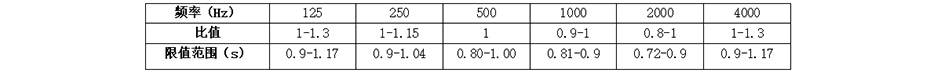 表2 各頻率的混響時間相對于中頻 500-1000Hz 的比值