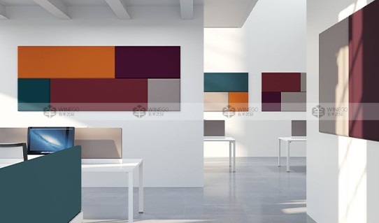 布藝吸音板采用樹脂邊框、鋁合金邊框以及木邊框,內(nèi)置不燃高密度玻纖聲學(xué)棉板,外包阻燃裝飾布。它是集環(huán)保、裝飾、防火、無粉塵、安裝簡單等優(yōu)點于一體的優(yōu)質(zhì)聲學(xué)材料。對中高頻噪聲有較佳吸聲效果。